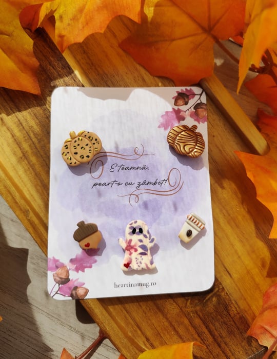 Set format din 5 broșe de toamnă, modelate manual din lut polimeric. Au sistem de prindere tip ac.