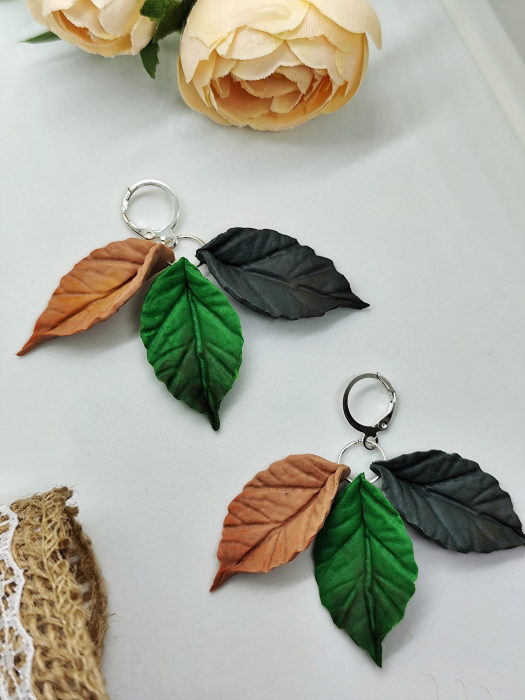 Cercei modelați manual din lut polimeric. Elemente din oțel inoxidabil hipoalergenic.