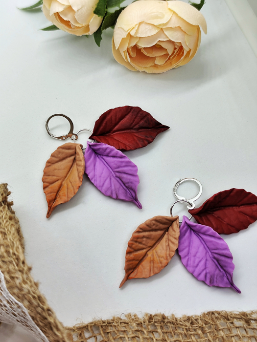 Cercei modelați manual din lut polimeric. Elemente din oțel inoxidabil hipoalergenic.