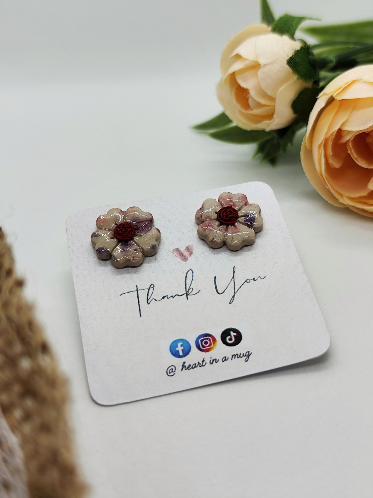 Cercei modelați manual din lut polimeric și rășină. Elemente din oțel inoxidabil hipoalergenic.