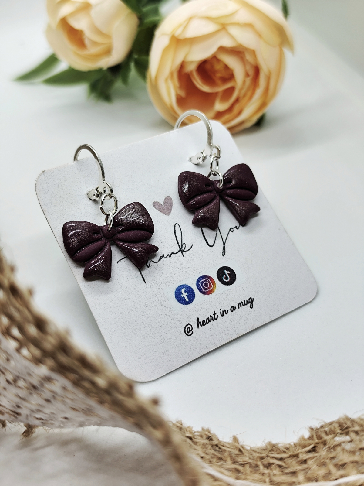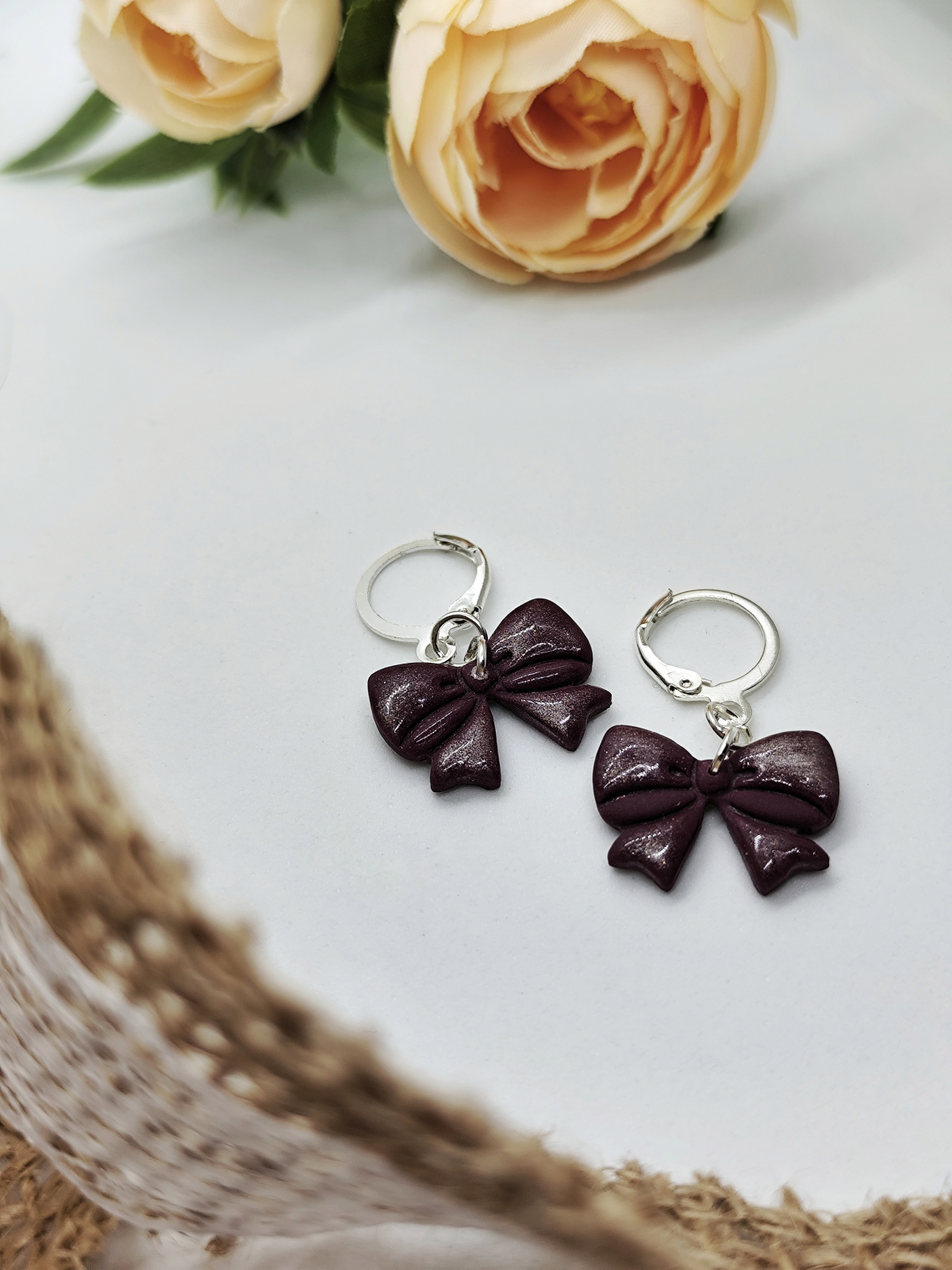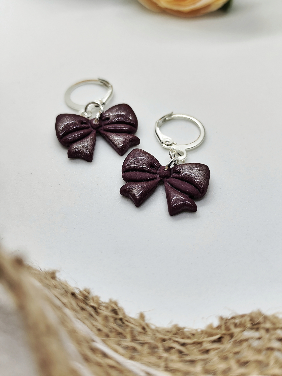 Cercei modelați manual din lut polimeric și rășină. Elemente din oțel inoxidabil hipoalergenic.