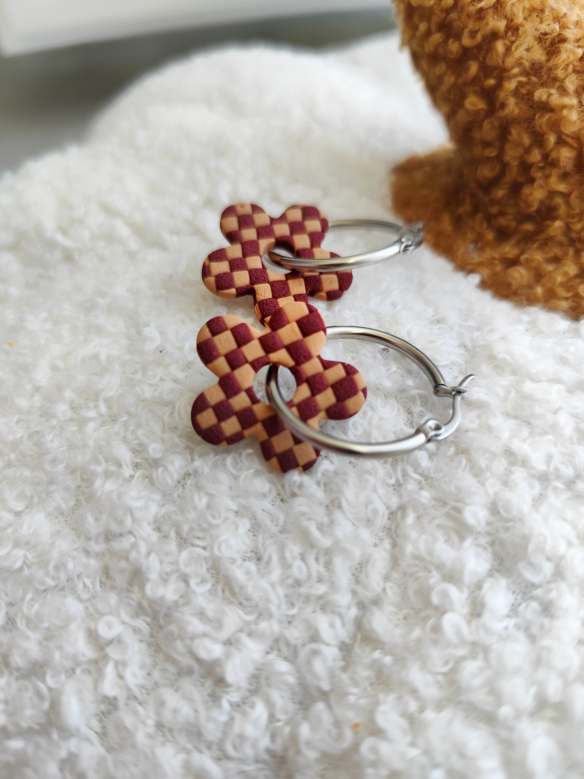 Cercei realizați din lut polimeric. Elementele metalice sunt din oțel inoxidabil