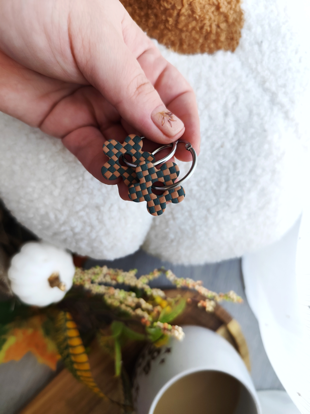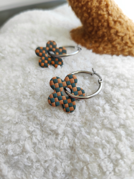 Cercei realizați din lut polimeric. Elementele metalice sunt din oțel inoxidabil