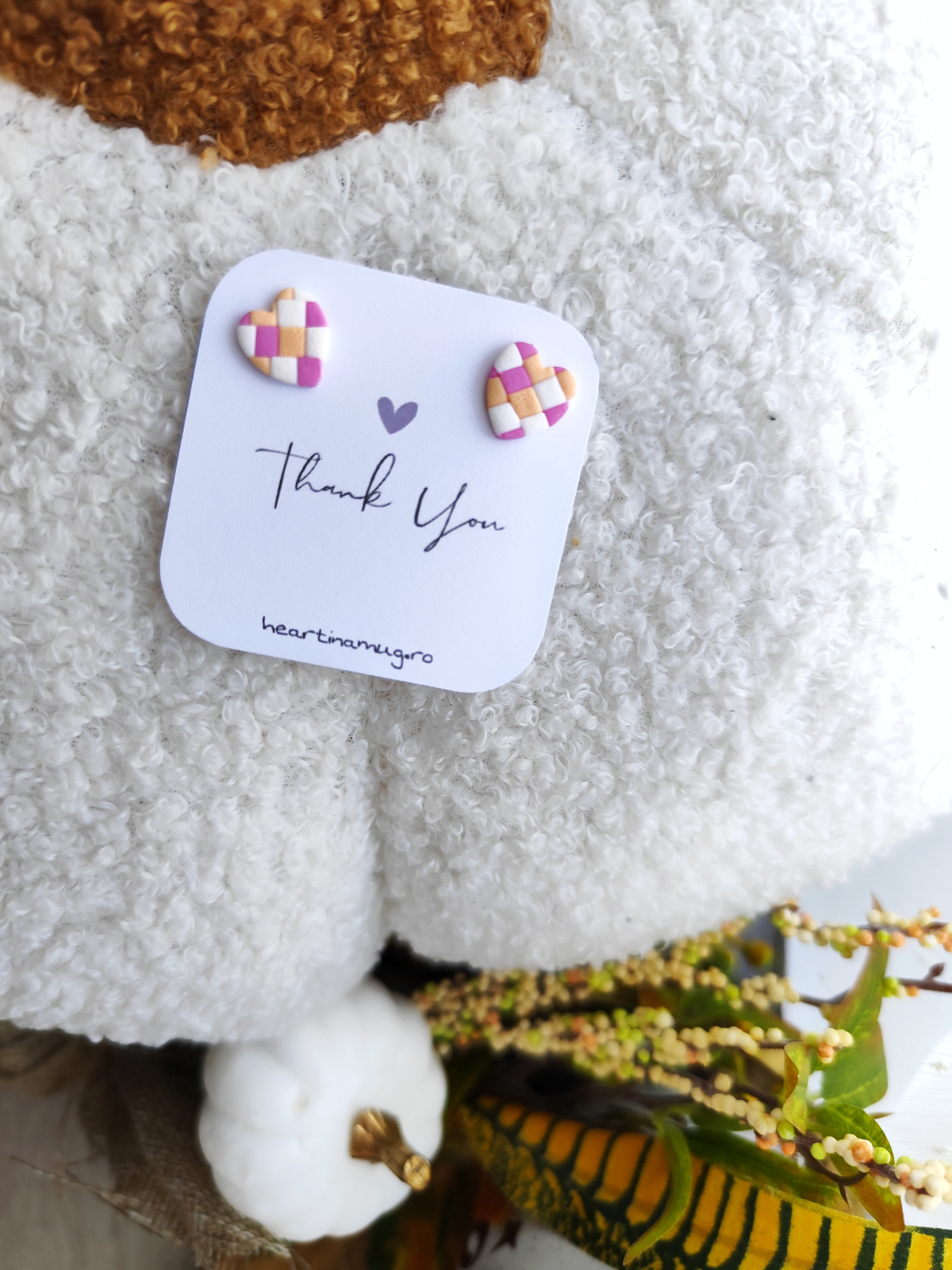 Cercei realizați din lut polimeric, cu sistem de prindere tijă. Elementele metalice sunt din oțel inoxidabil